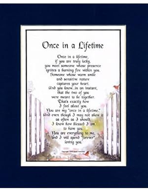 The "Once In A Lifetime" A Sentimental Gift For Husband, Wife, Girlfriend Or Boyfriend. Touching 8x10 Poem, Double-matted In Description
