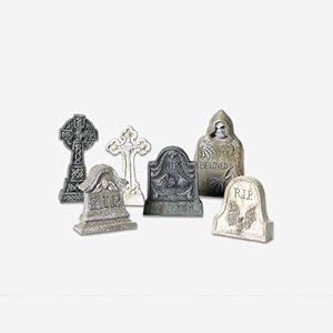 Reviews for Department fifty six Village Tombstones St/6 (Kitchen) I used the tombstones along with some spooky town equipment to make a cemetery cake for my son's halloween birthday party. The closeup footage of the cake look like they're of a real cemetery. The pieces are very well crafted and appear nice.