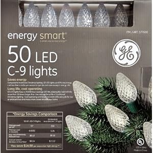 Reviews for GE 50 LED C-9 Warm White Energy Saving Indoor/Outdoor Holiday Lights with Constant On C9 (Kitchen) If you are planning to make use of the plastic clips on the bulb base, don't bother. At least 50% of the clips snapped off once I tried to clip them to our home gutters (and I was being very careful). The milds themselves are very pretty, however be ready to make use of some other clips to hang them with.