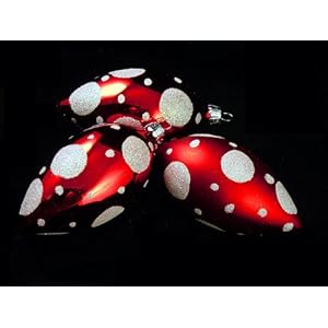 $3.99 Set of 3 Peppermint Twist Shatterproof Red Polka Dot Finial Christmas Ornaments