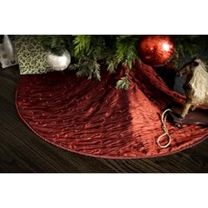 Classic Red Christmas Tree Skirt - Embroidered Taffeta - 40" Diameter