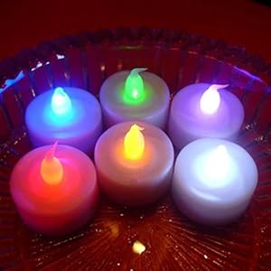 Reviews for Color Changing Everlasting Tealights Candles with 7 Rainbow Colors- Set of 12 Truly gorgeous colors that add a horny ambiance to any decor. I love the urged makes use of within the product images--that's exactly how I use most of mine! I suggest Darice lustre gemstones (also available on Amazon) for filling the containers you location the candles in--they do a excellent seeming job of refracting the coloured mild.